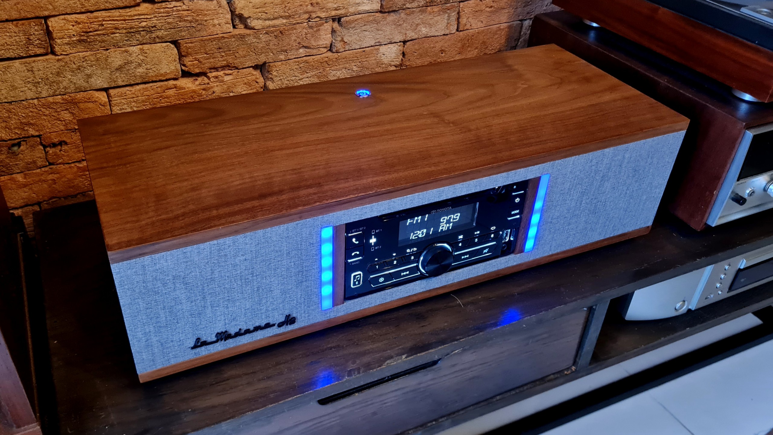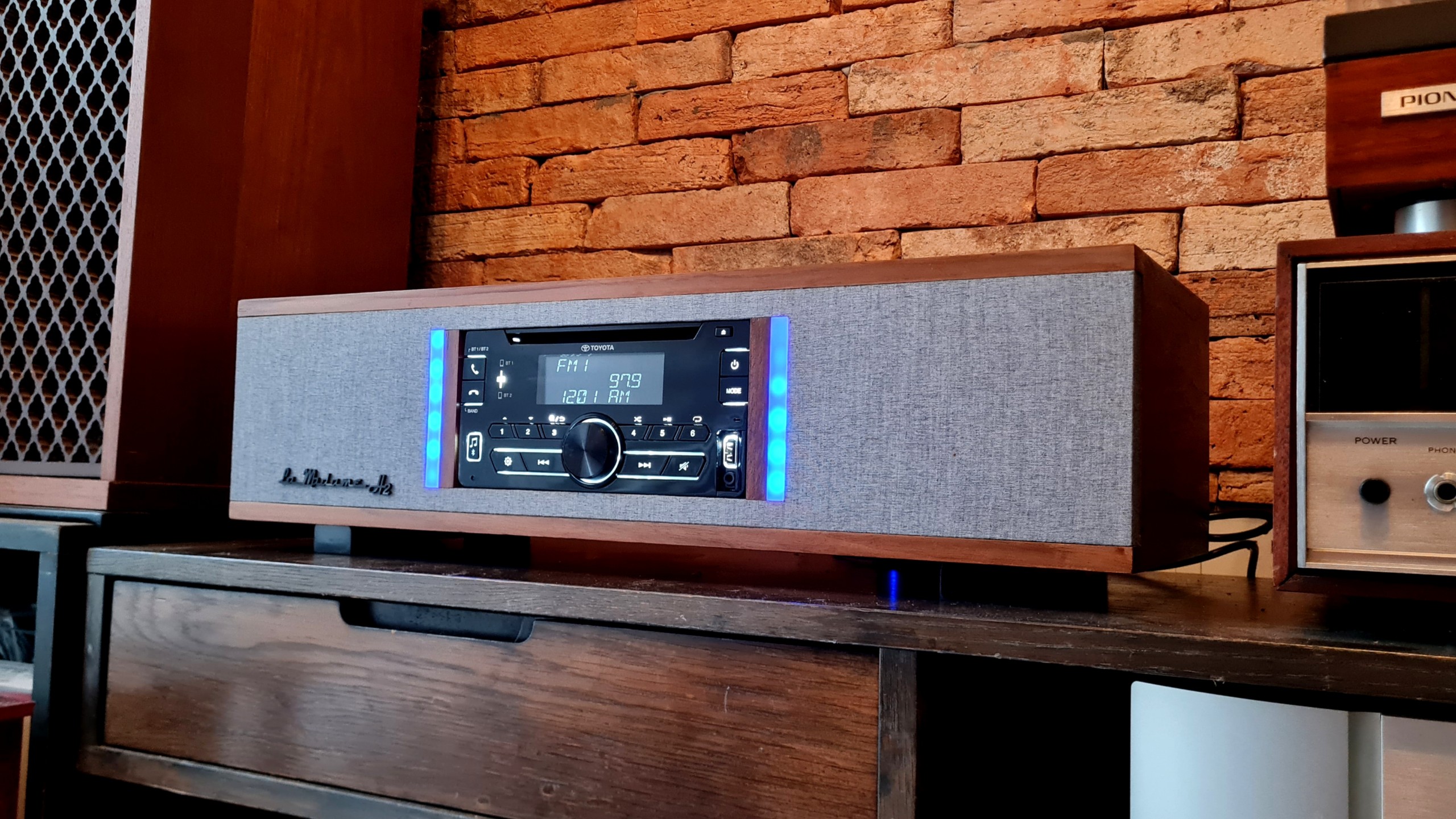 - Thiết kế: Vuông vắn nhưng hoài niệm của những chiếc đài redio cổ, kết hợp với chất liệu gỗ và lưới ê căng mang đến sự hiện đại nhẹ nhàng, tạo điểm nhấn cho không gian nội thất trong nhà bạn bên cạnh chức năng chính là chiếc máy hát với đầy đủ kết nối như: CD, giắc 3.5, USB, Bluetooth.